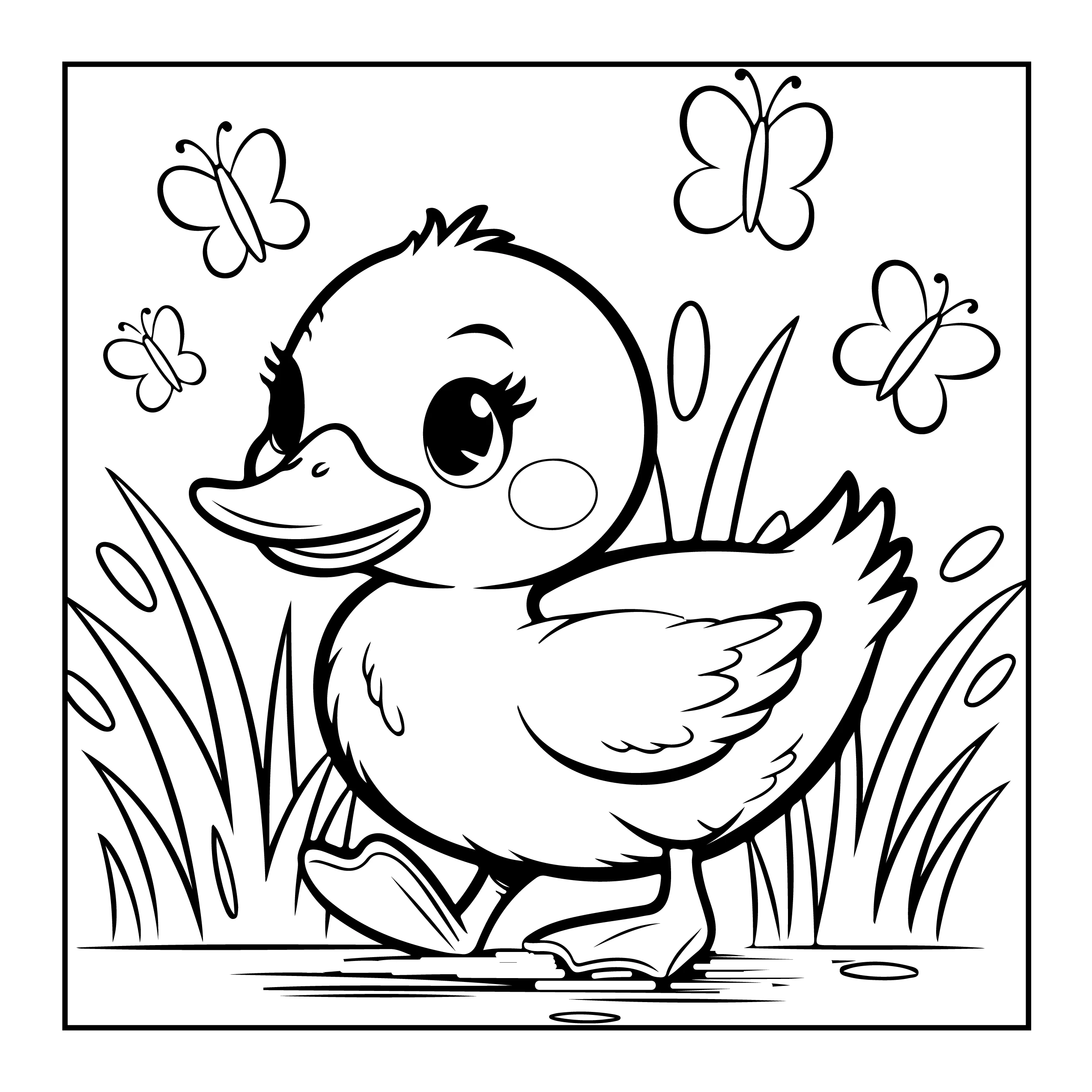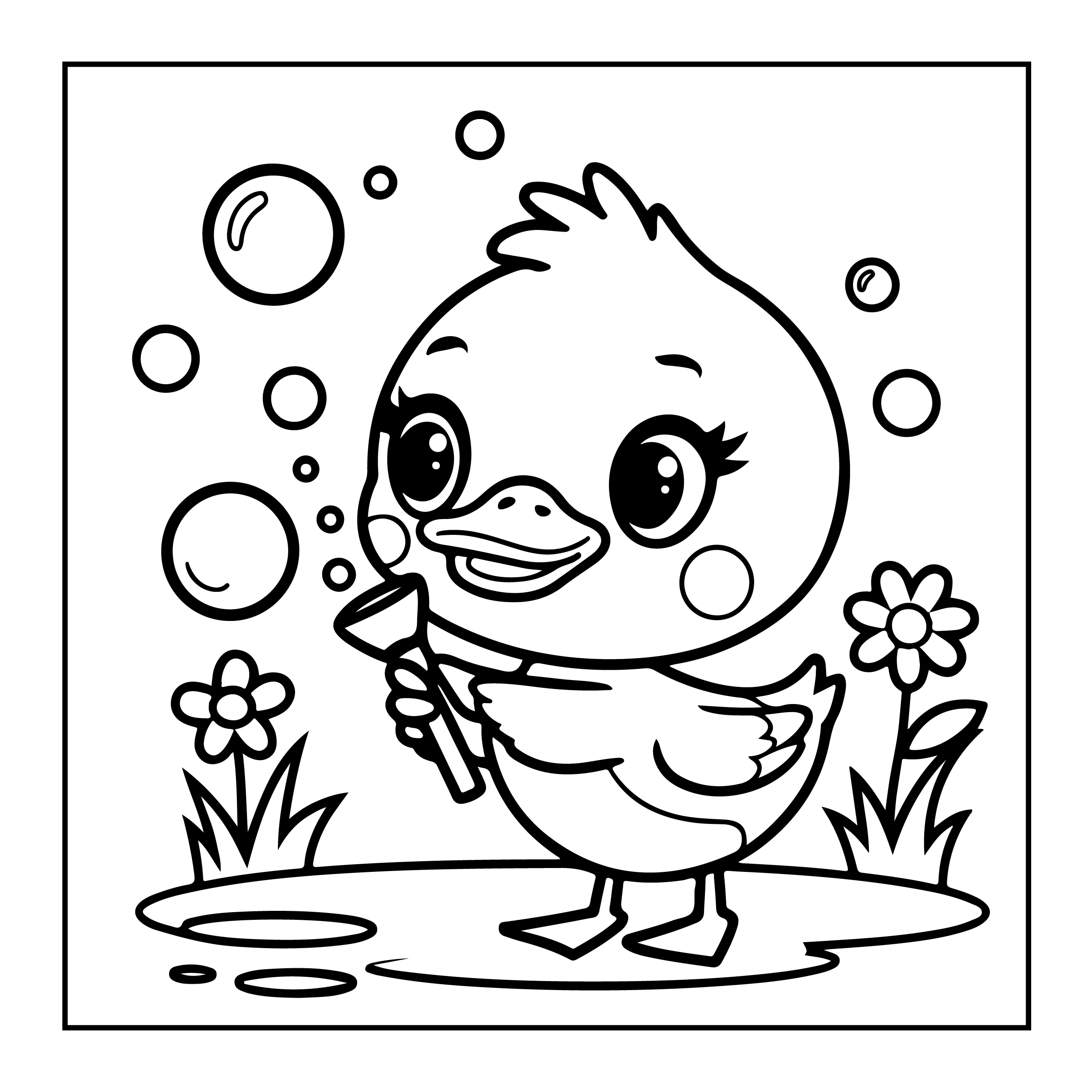 Ignite your child's creativity with the Bold and Easy Duck Coloring Book. Designed for young artists, this coloring book features bold outlines to make coloring easy and enjoyable. The friendly cartoon duck with its beige body, orange beak, and playful expression invites kids to bring it to life with colors. Perfect for developing fine motor skills, this book offers a delightful escape into a world of imagination, set against vibrant ponds and blooming flowers. Ideal for home or school, it promises fun-filled hours of artistic exploration.